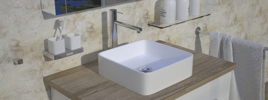 Pentru chiuvetele noastre de blat, alegeți din gama noastră în continuă extindere de robinete ridicate sau din scurgerile noastre Click-Clink, disponibile în versiuni cu sau fără revărsare, cu blaturi din porțelan cromat, alb sau negru, în finisaje mate sau lucioase.