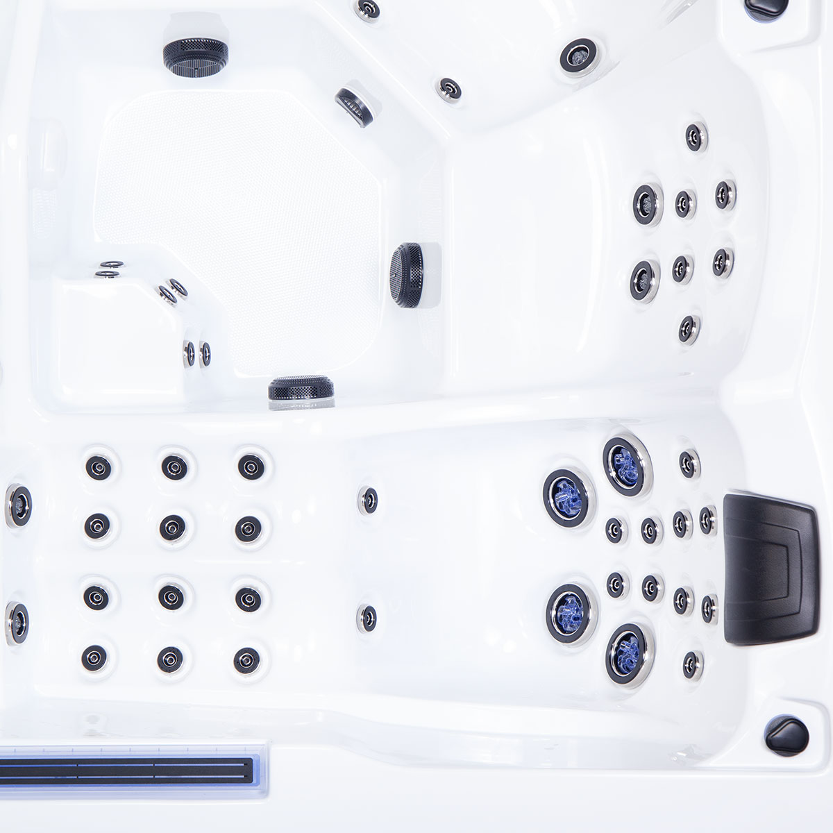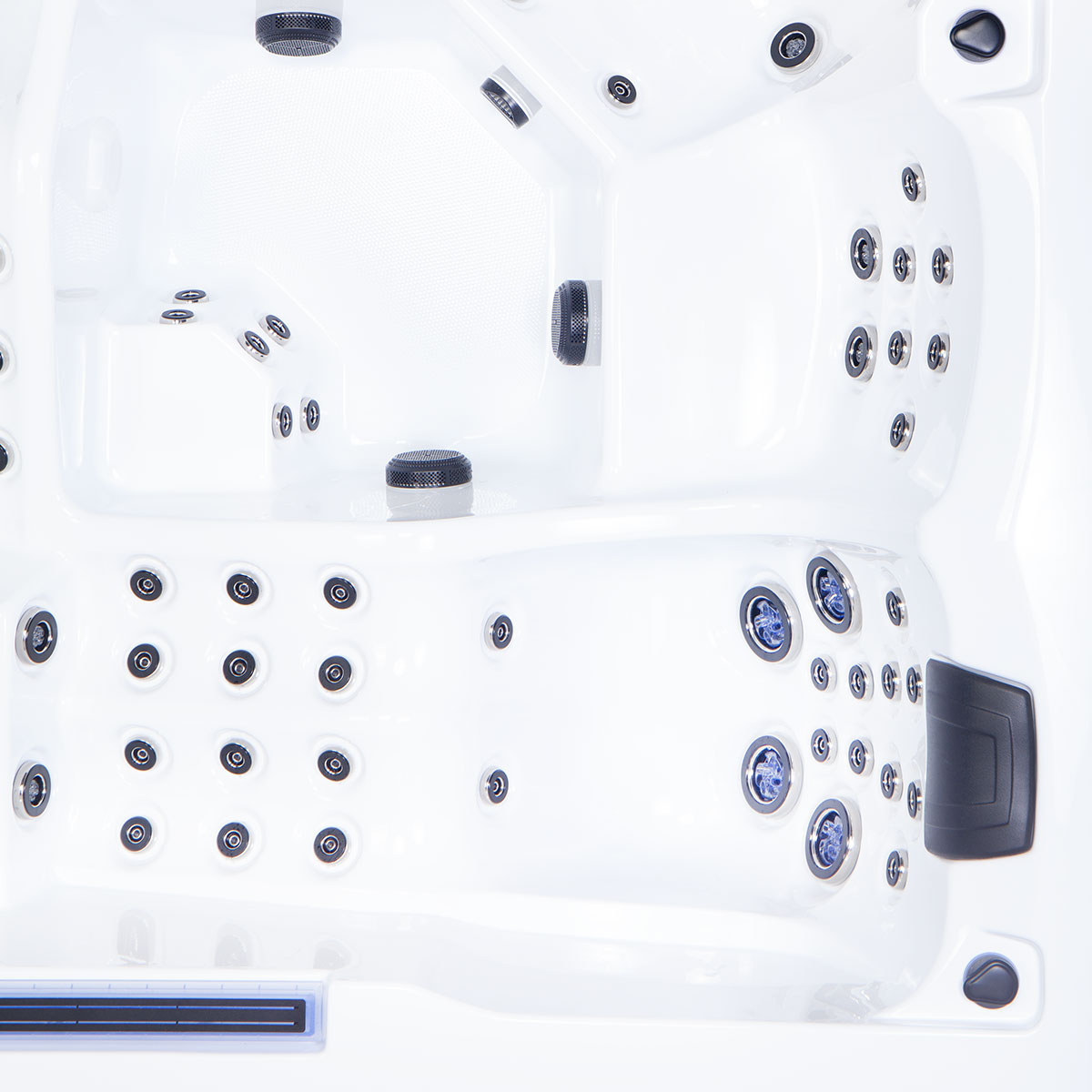 Fabricat din materiale premium, inclusiv acril PU durabil și izolație de înaltă calitate, acest jacuzzi asigură performanță de lungă durată și eficiență energetică. Iluminarea centrală RGB creează o atmosferă relaxantă, în timp ce caracteristici precum tetierele ergonomice și masajul pentru gambe și coapse transformă fiecare baie într-o experiență de răsfăț total.