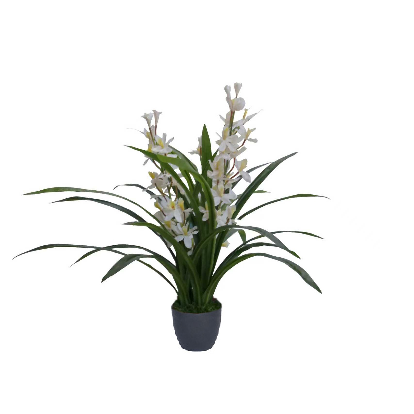 Eleganță atemporală cu o plantă artificială de orhidee. Florile sale albe și frunzele verzi cu aspect natural adaugă instantaneu o notă de lux oricărui spațiu. Alegerea ideală dacă doriți să completați interiorul cu eleganță și rafinament, fără grija întreținerii.