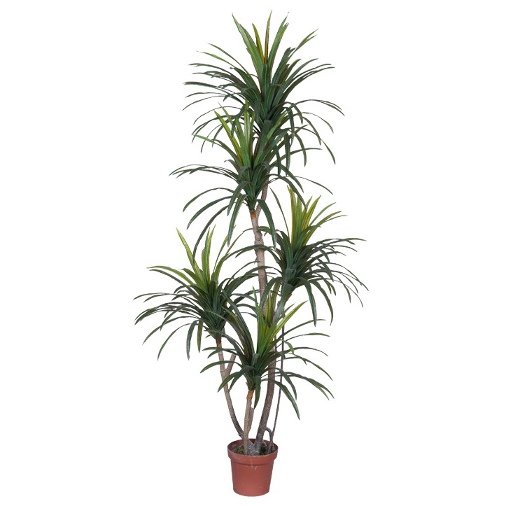 Palmierii Yucca artificiali sunt extrem de populari în designul interior. Datorită aspectului lor natural, creează o atmosferă realistă, fără a necesita udare sau îngrijire specială. Cu o întreținere minimă, își păstrează frumusețea pe termen lung.