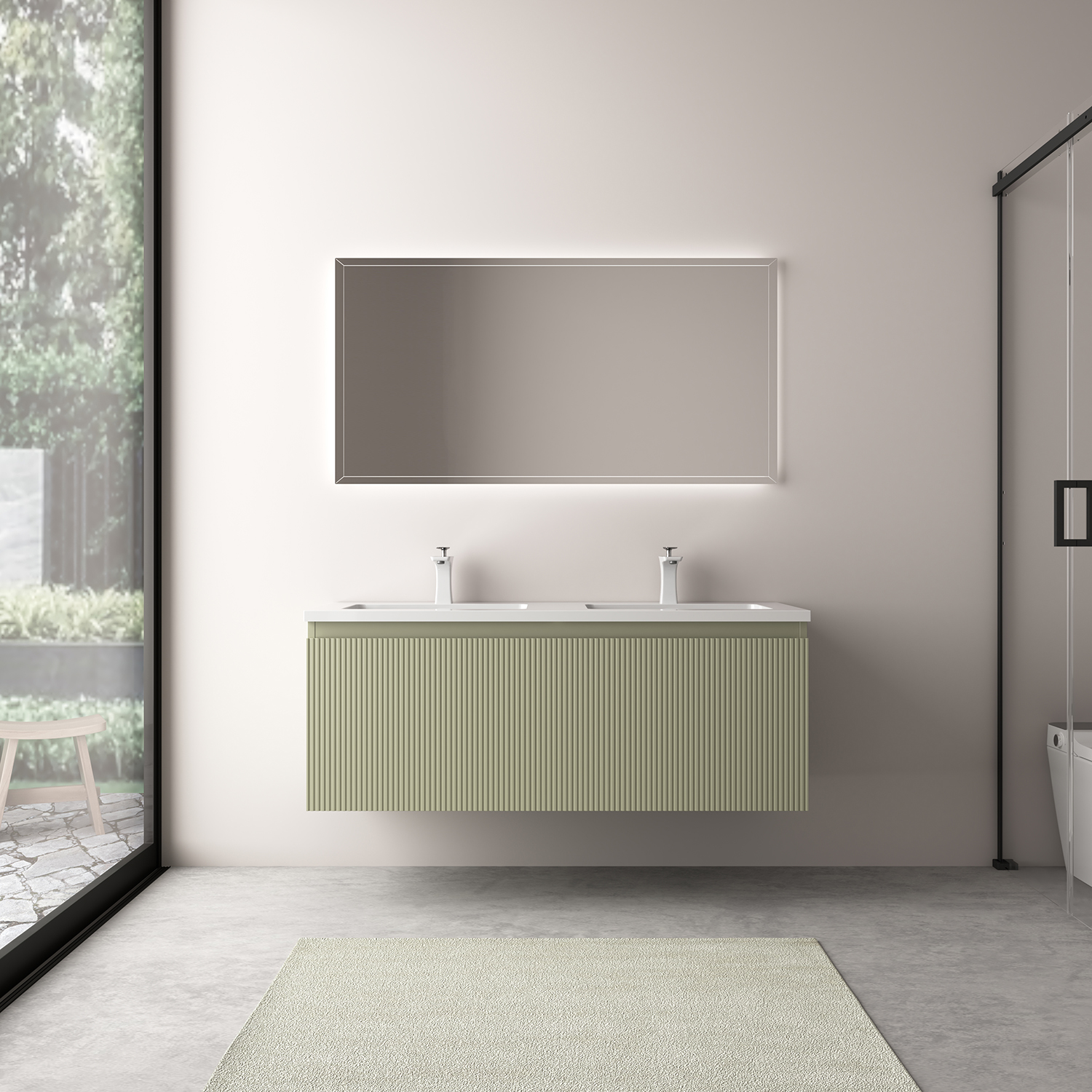 suprafață lăcuită verde bambus pal, cu front striat vertical