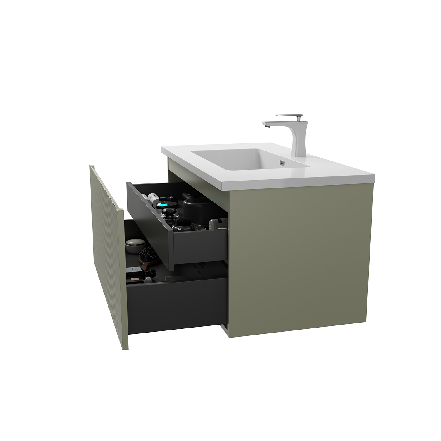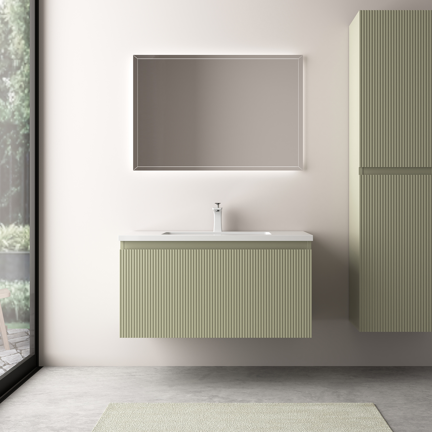 suprafață lăcuită verde bambus pal, cu front striat vertical